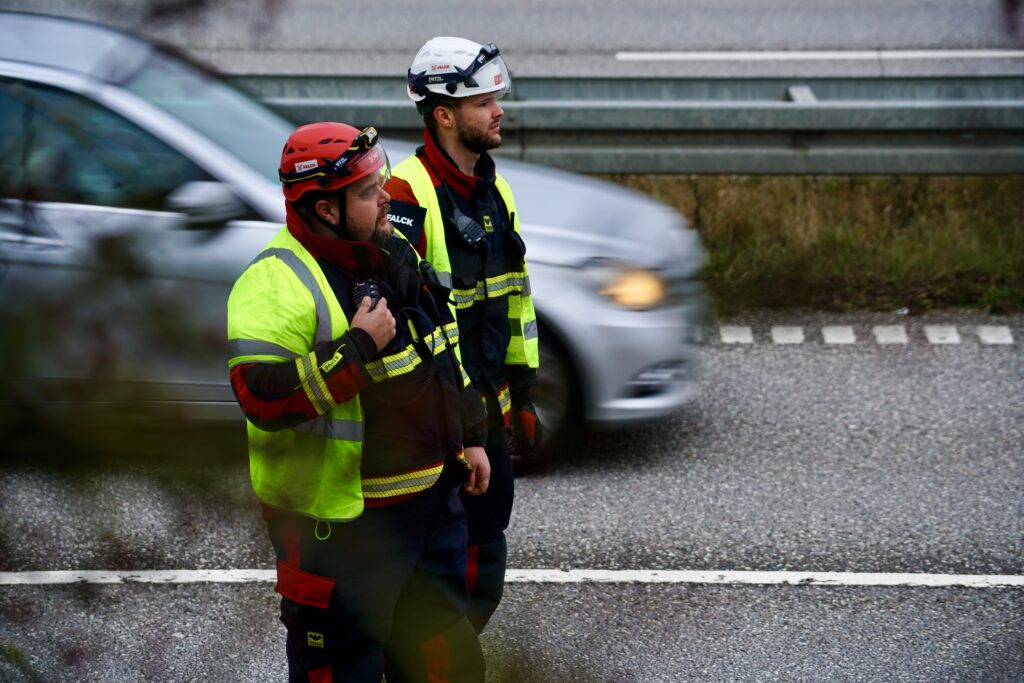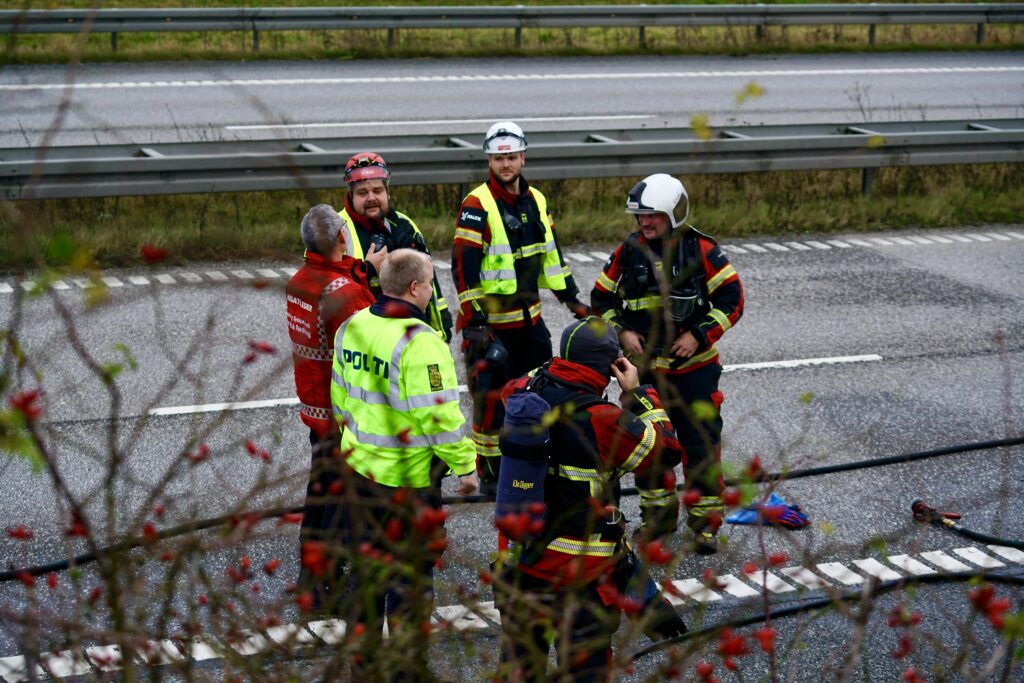 ‘På vej til stedet kunne jeg fra cirka tre kilometers afstand se en sort røgsky for motorvejen,’ lyder det fra Presse-fotos.dk’s udsendte.