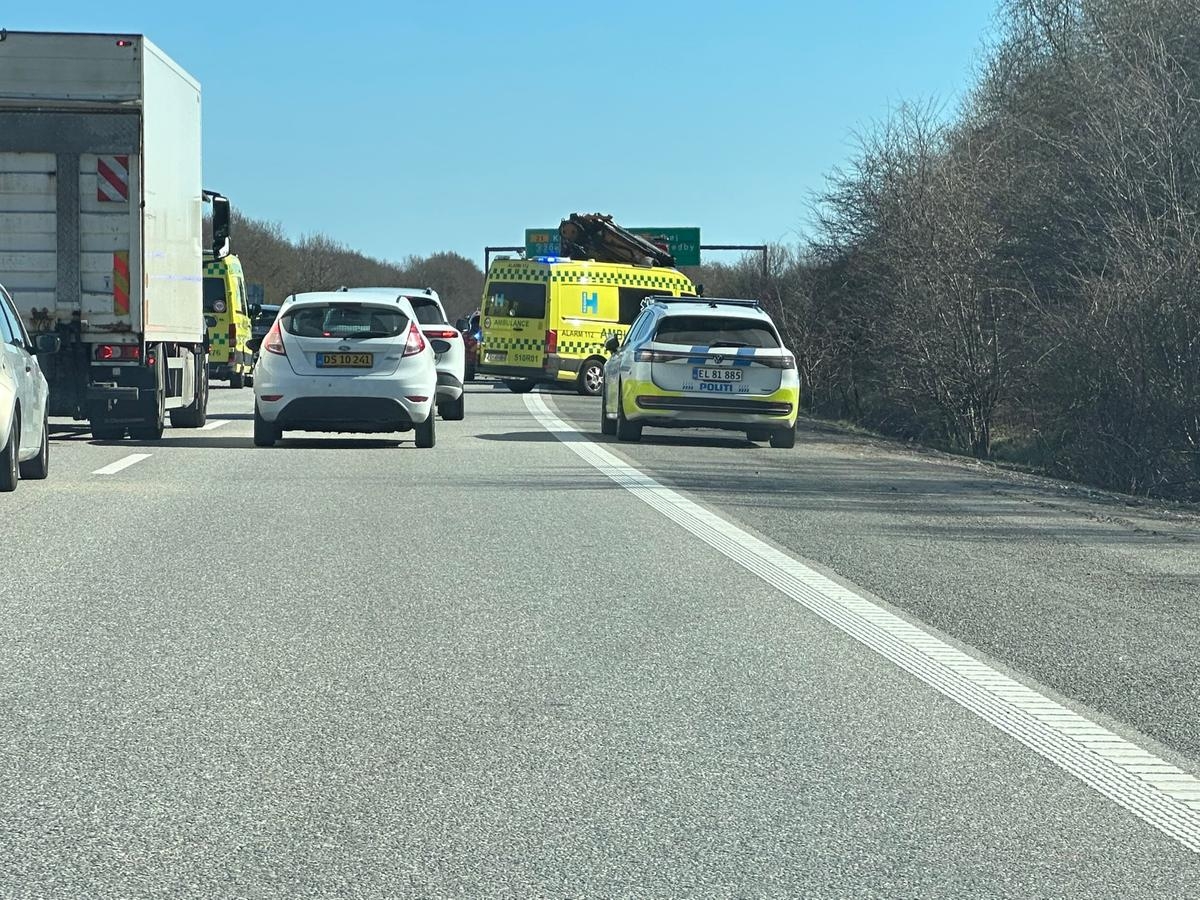 Billeder fra Presse-fotos.dks udsendte viser, at en lastbil holder på tværs af vejen.
