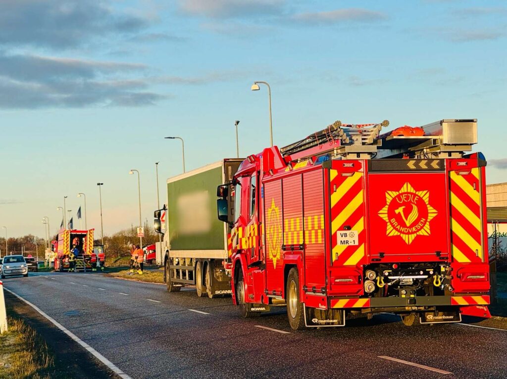 Meldingen er sket på Andkærvej i krydset ved Sadelmagervej i Vejle.