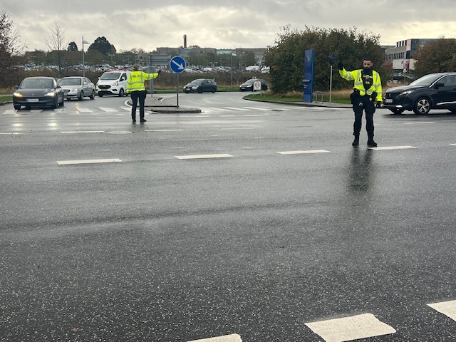 Her bliver trafikken nu guidet af betjentene på stedet.