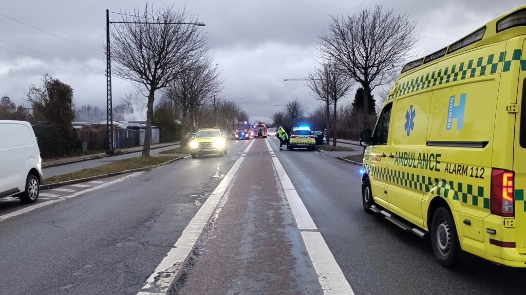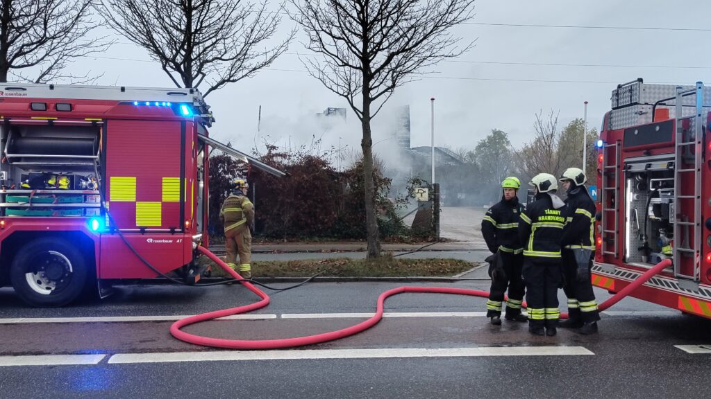 Kongelundsvej har været spærret i forbindelse med slukningsarbejdet. Det er den fortsat, lyder det fra redaktionens udsendte.