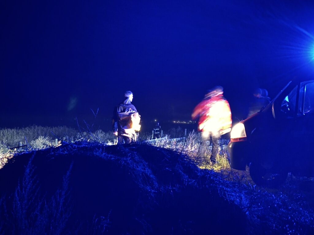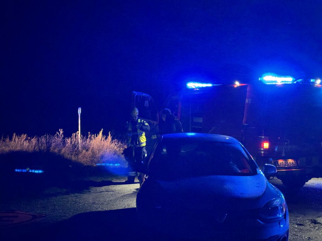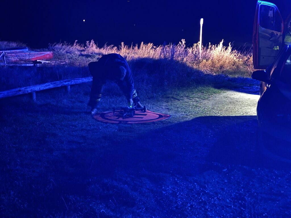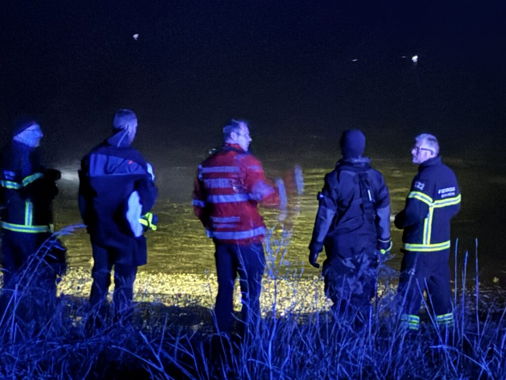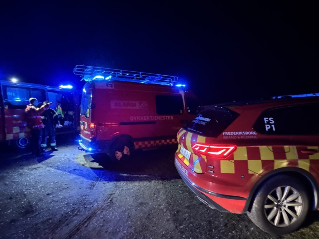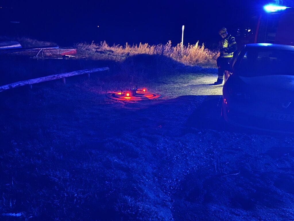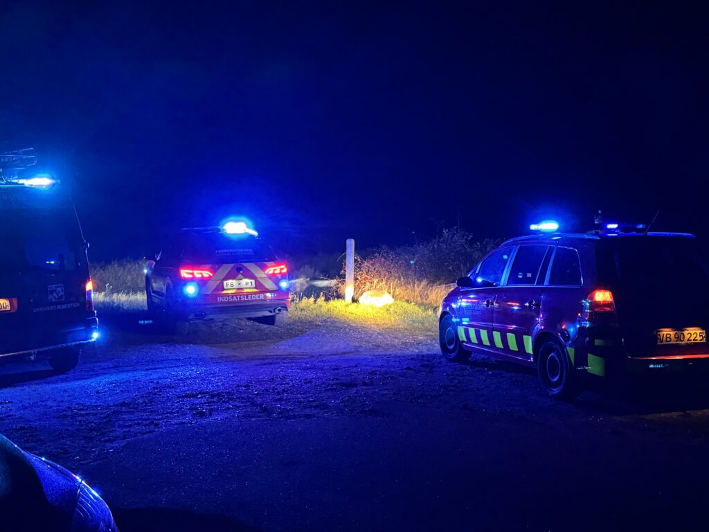 Billeder fra stedet viser, hvordan beredskabspersonalet står ved stranden og lyser ud på vandet. Samtidig fylder udrykningskøretøjernes blå blink i aftenmørket.