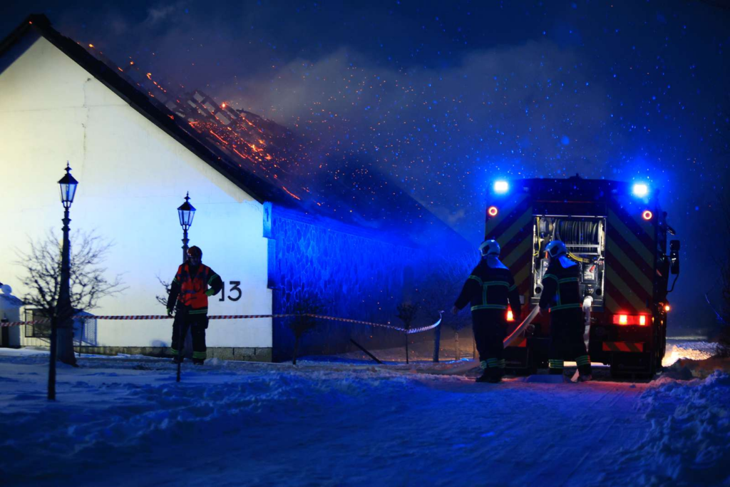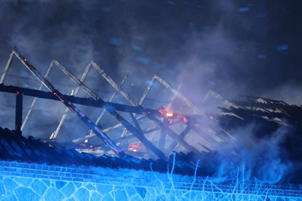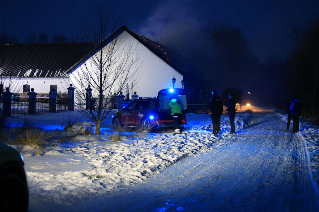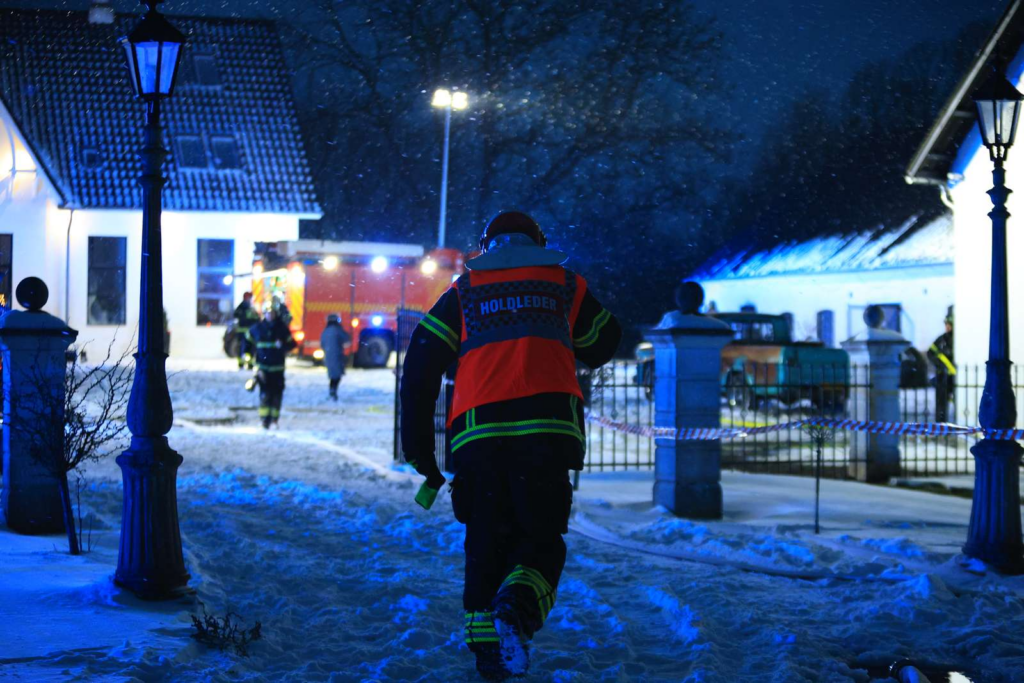“Der er en kraftig gårdbrand,” siger vores udsendte.