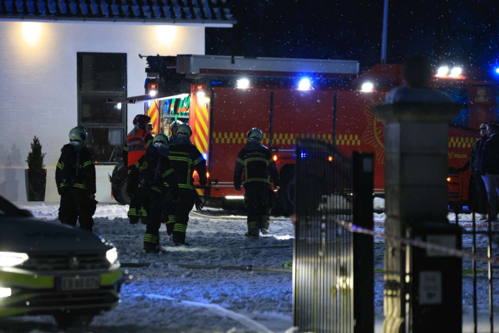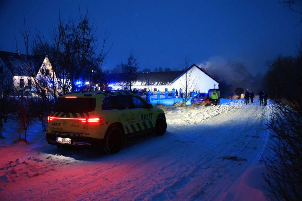 “Flere brandstationer er blevet tilkaldt, og der er også to lægebiler sammen med politi,” siger Presse-fotos.dks udsendte.