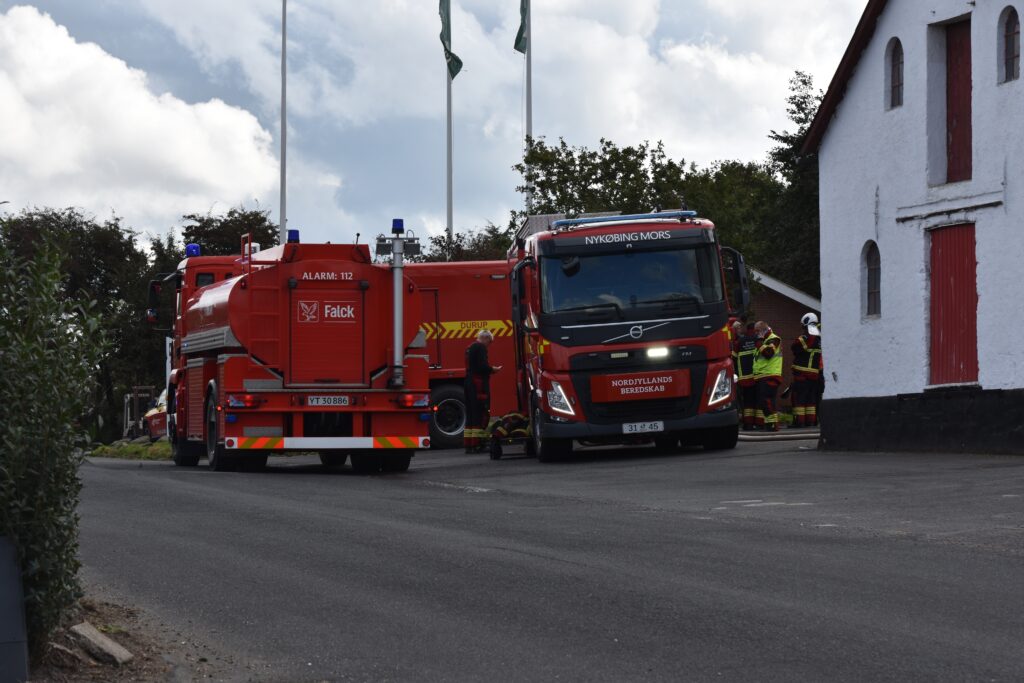 Branden er brudt ud i en bygning på Østervang i Nykøbing Mors kort før klokken 11.