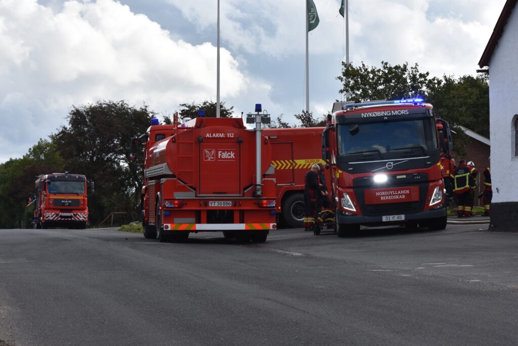 Små brandlommer er dog stadig i gang, som brandvæsenet arbejder på at komme hen til og få slukket.
