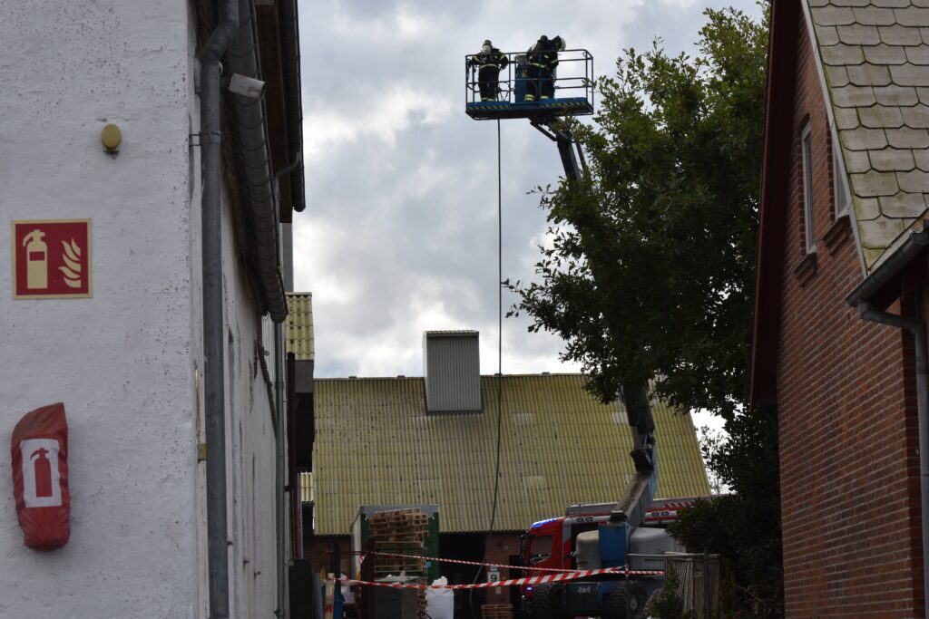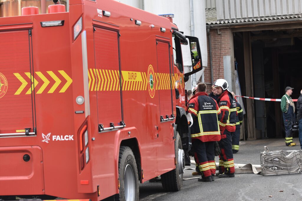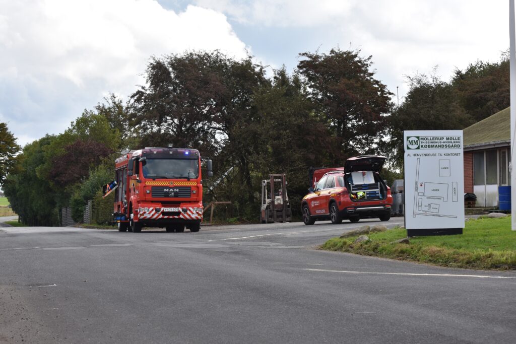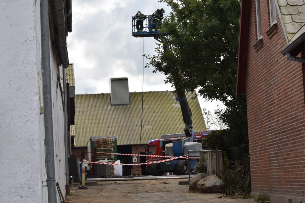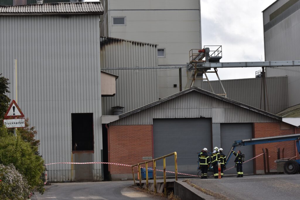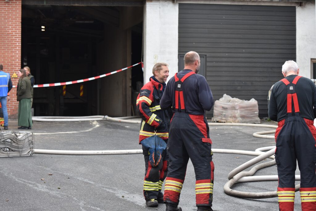 Et område er afspærret, mens brandvæsenet arbejder på stedet – se flere billeder nederst i artiklen.