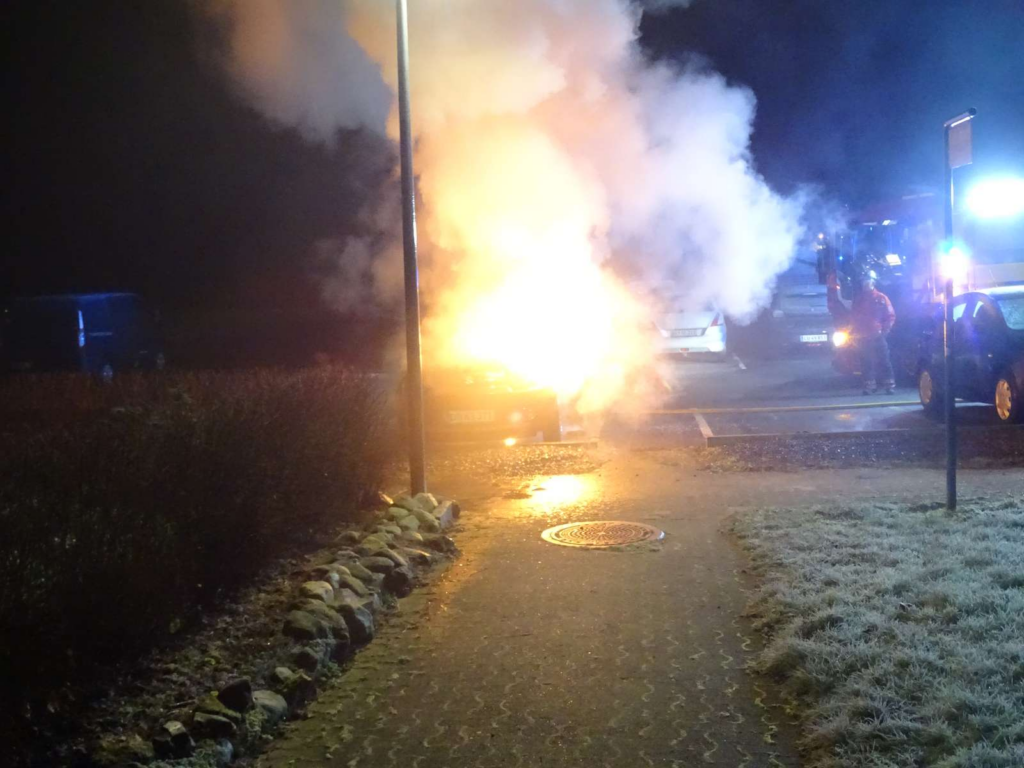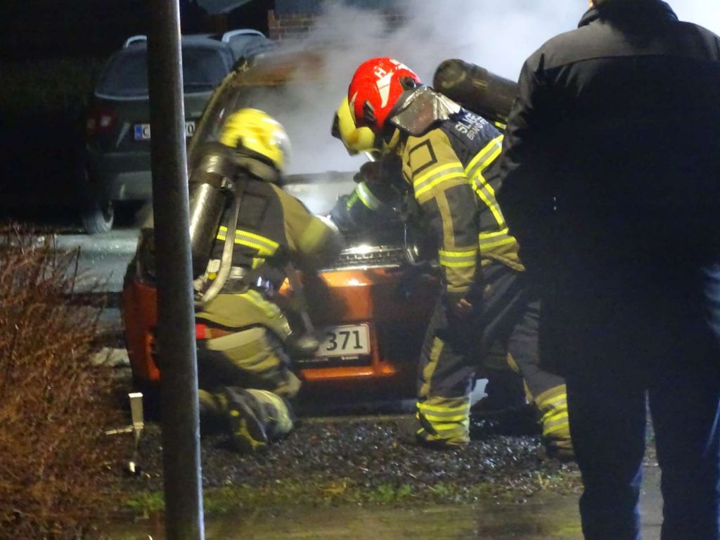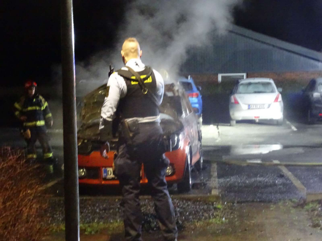 Da mandskabet ankom, stod en bil allerede i flammer, og branden havde nået at udvikle sig kraftigt.