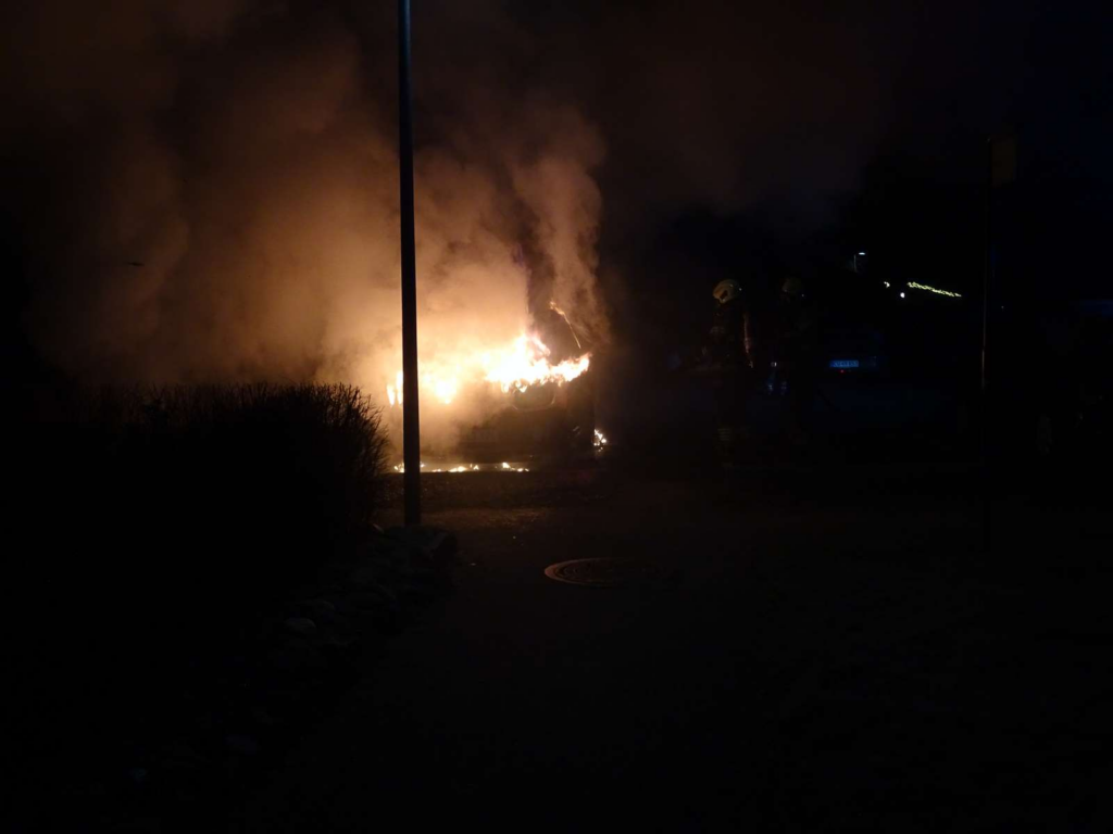 Ifølge de indledende oplysninger var der tale om en benzinbil, som brændte på en parkeringsplads. En varebil holdt parkeret lige ved siden af.
