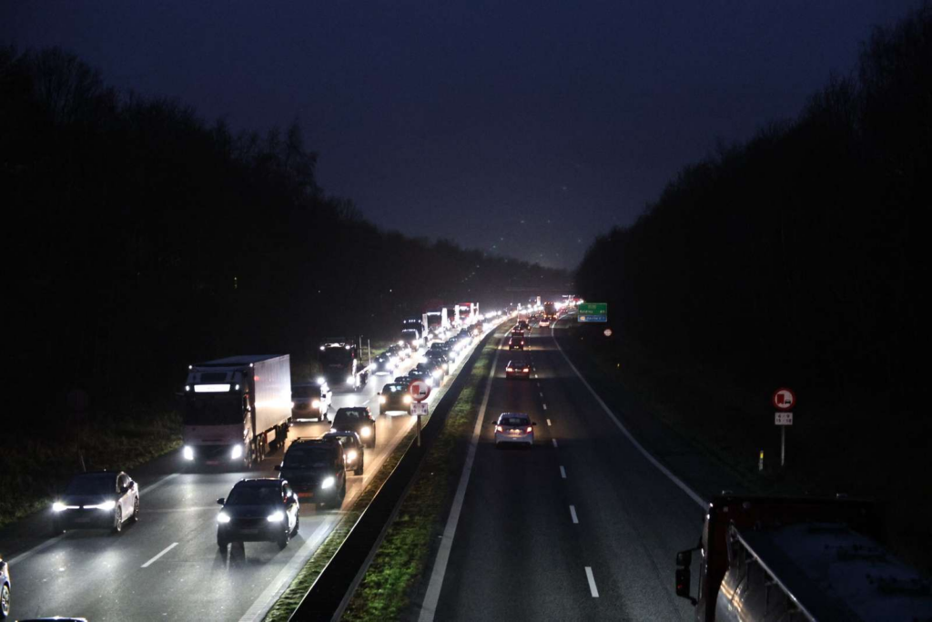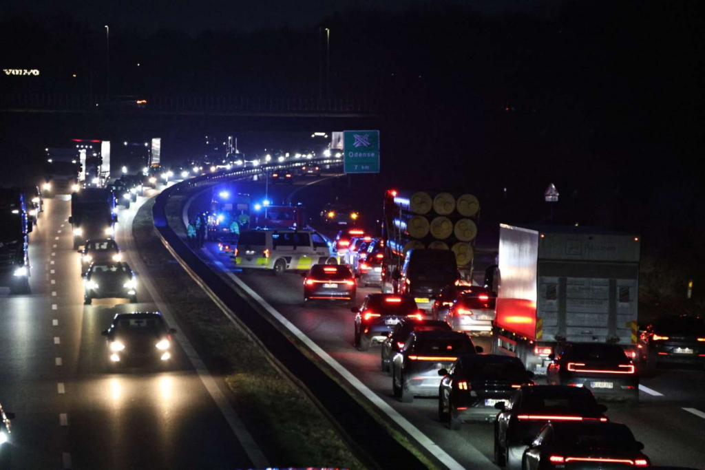 Et af politiets udrykningskøretøjer holdt i en rum tid på tværs af det venstre spor, men der skulle igen være åbnet i begge spor.