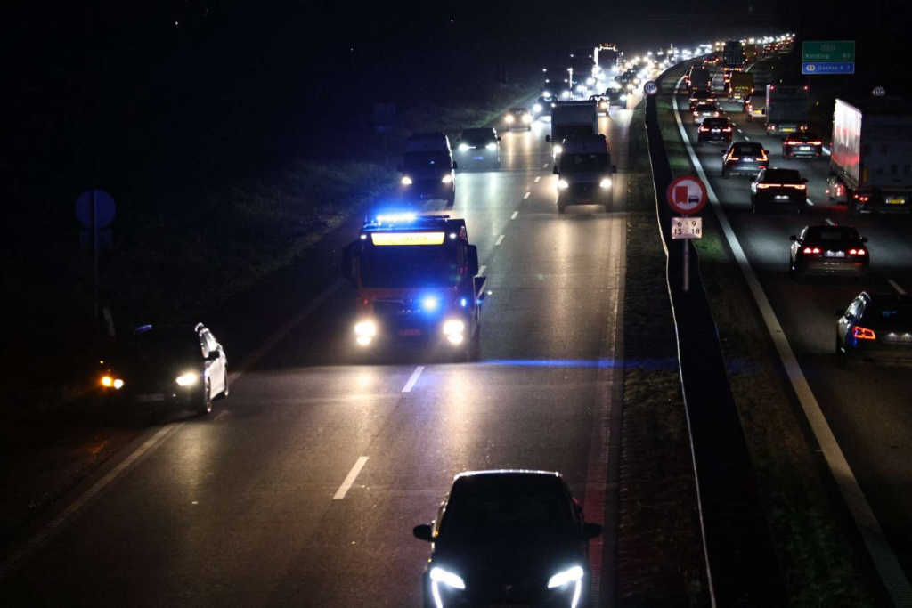 I forbindelse med hændelsen har venstre spor været spærret, mens politi og redning har arbejdet på stedet.