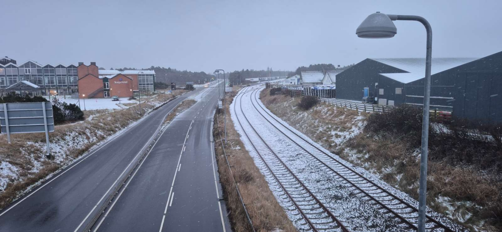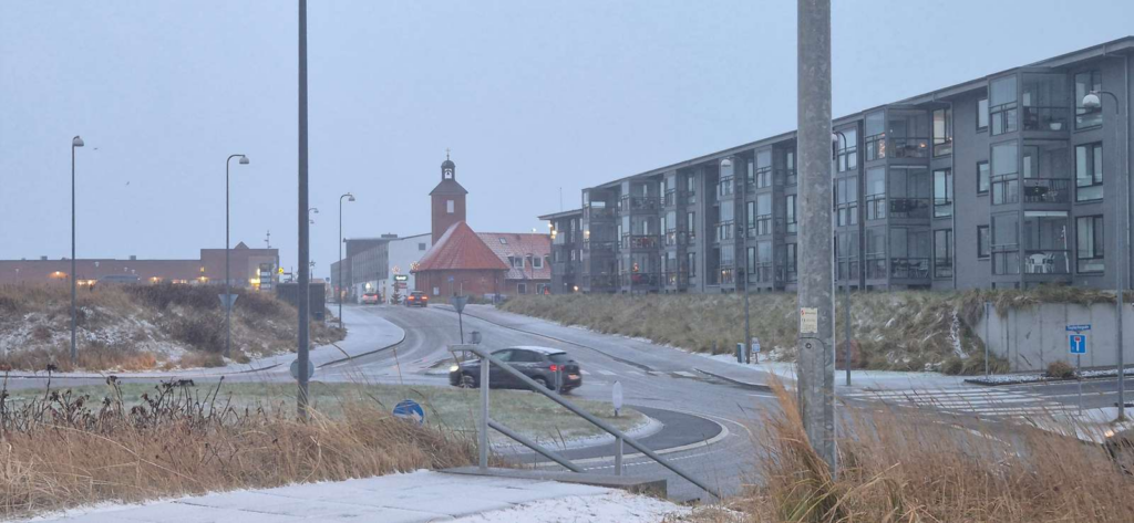 Sneen fra Nordjylland bevæger sig i løbet af dagen videre ned over landet og giver snebyger de fleste steder – ud over Bornholm.