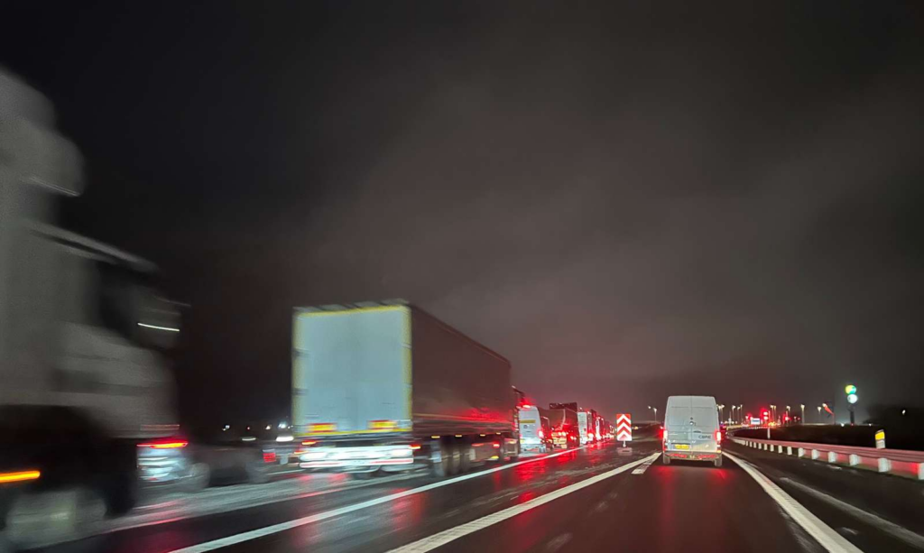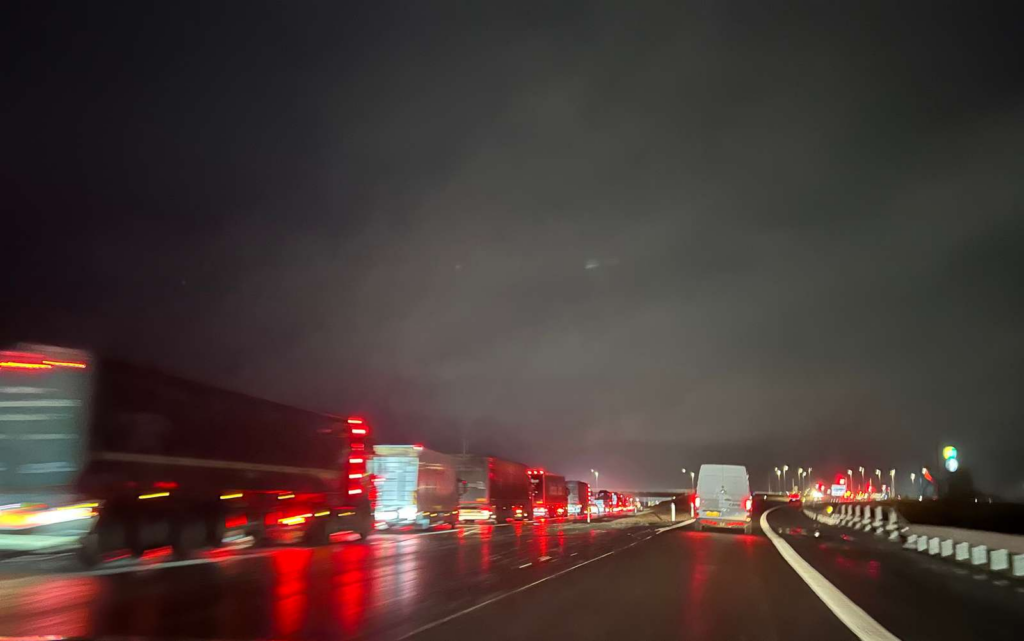 Det betyder, at trafikken i morgentimerne afvikles langsomt, og bilister advares om at køre med ekstra forsigtighed, når de nærmer sig området.