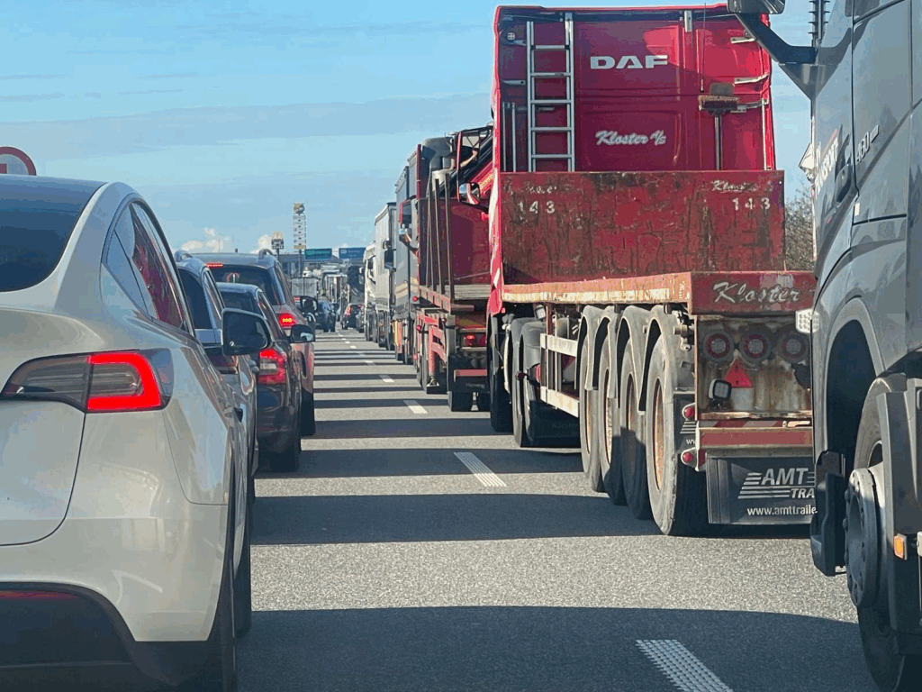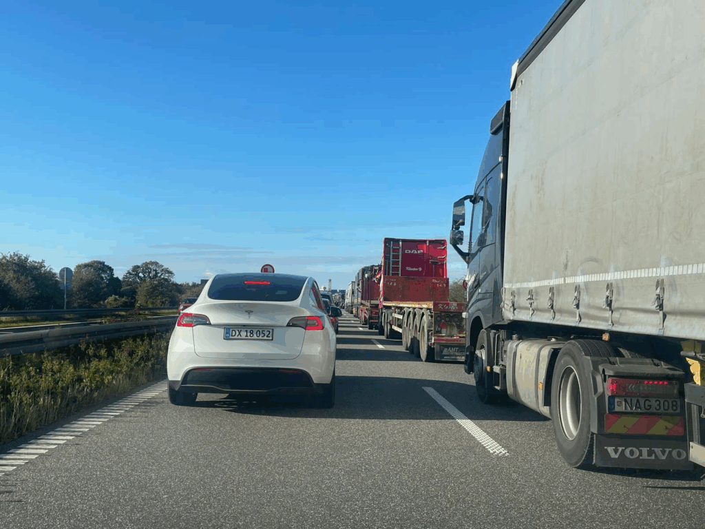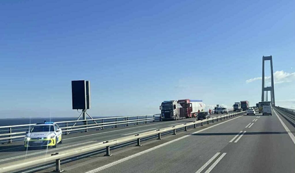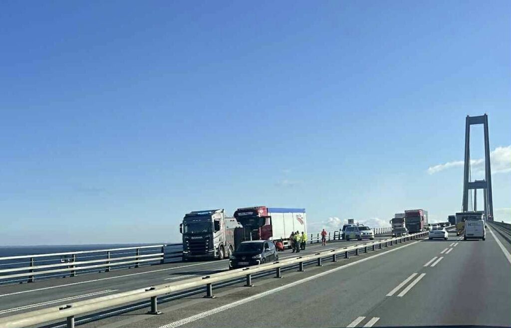 Vejdirektoratet bekræfter, at der er sket et fædselsuheld på broen – og at det skaber trafikal kaos.