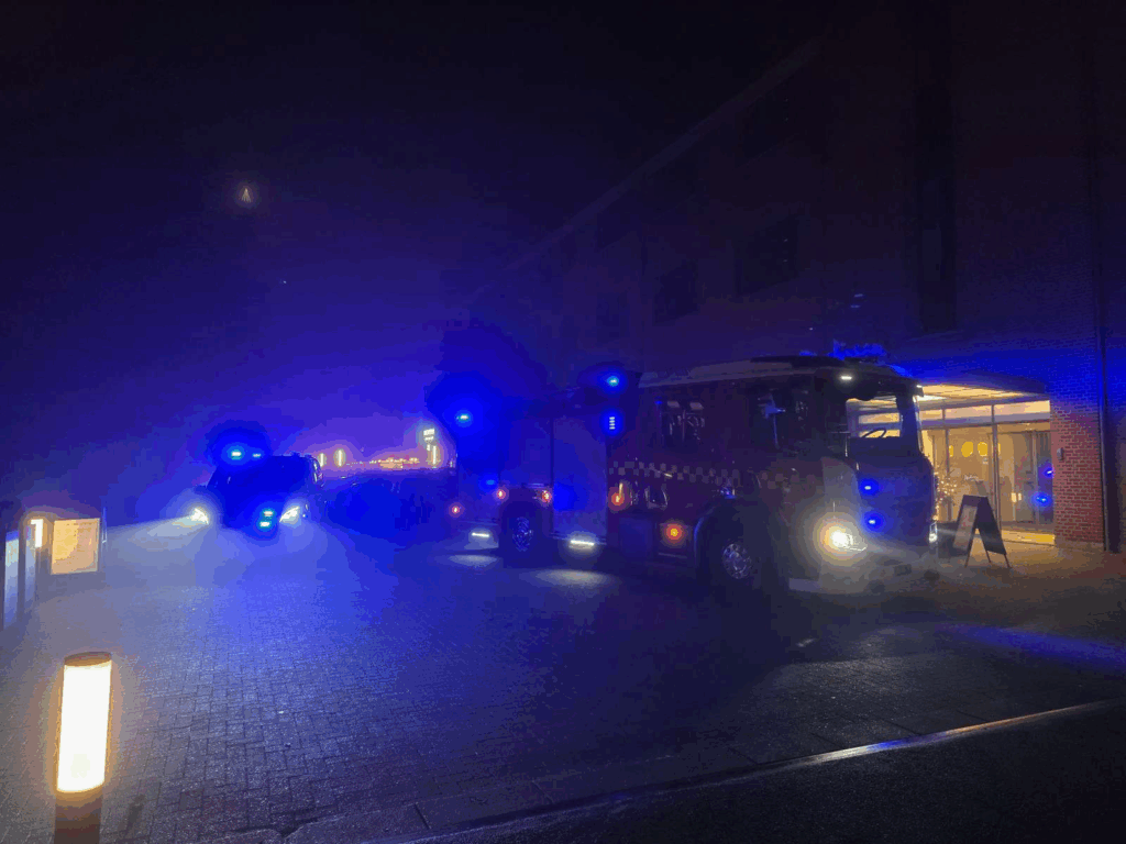 Kort før klokken 19 ankom en masse blå blink til hotellet.