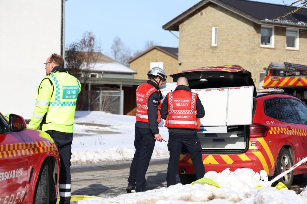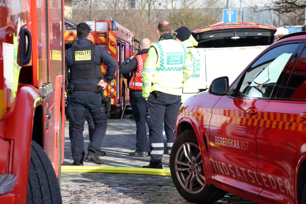 På billeder fra Presse-fotos.dks udsendte ses det, hvordan flere brandbiler er til stede, mens både politibetjente og indsatsleder også er på stedet.