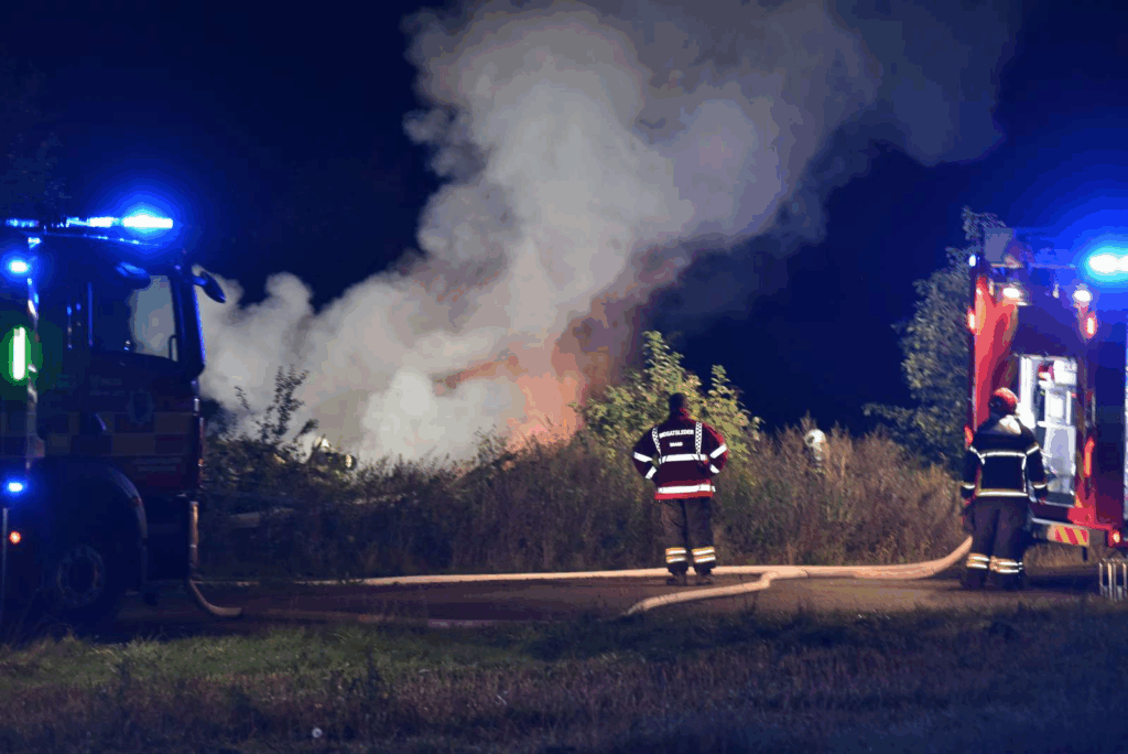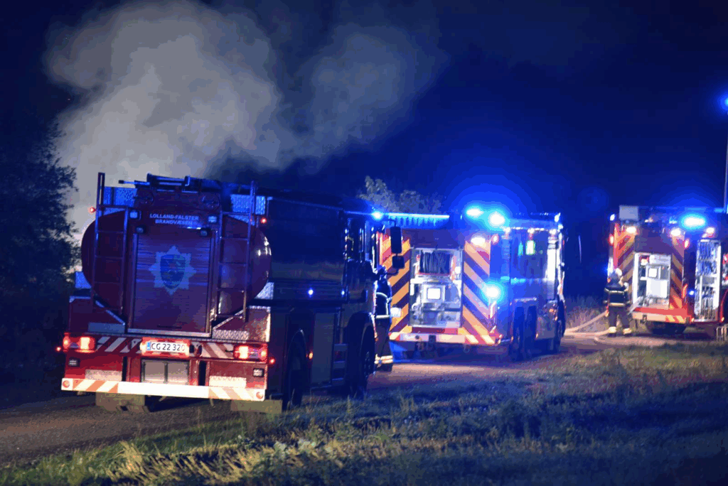 Klokken 20.55 søndag aften indgik der en alvorlig melding ved brandvæsnet om en bygningsbrand på en gård.