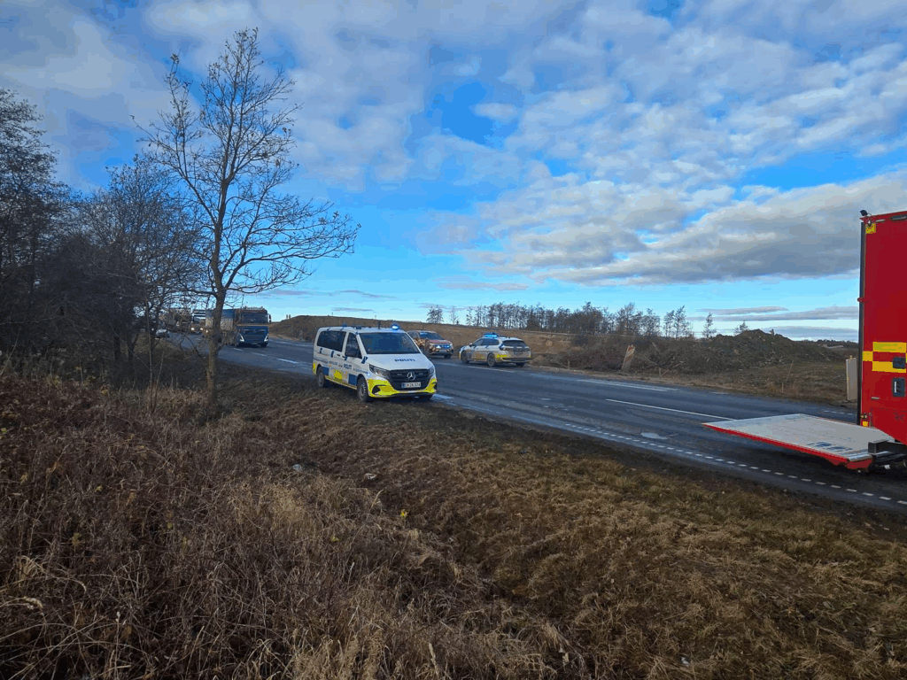 Adskillige udrykningskøretøjer er til stede i området. Det betyder, at hele vejen lige nu er spærret for gennemkørsel.