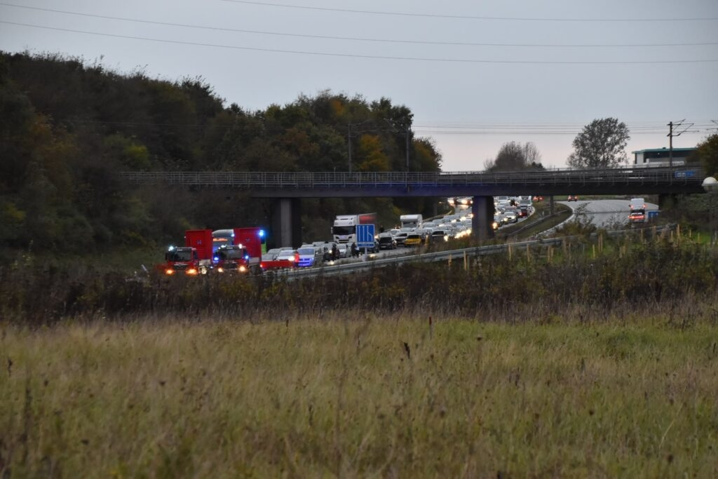‘Foreløbig melding fra vores indsatsleder på uheldsstedet er, at motorvejen er spærret i sydgående retning i hvert fald en halv times tid endnu,’ fremgår det af opslaget på X.