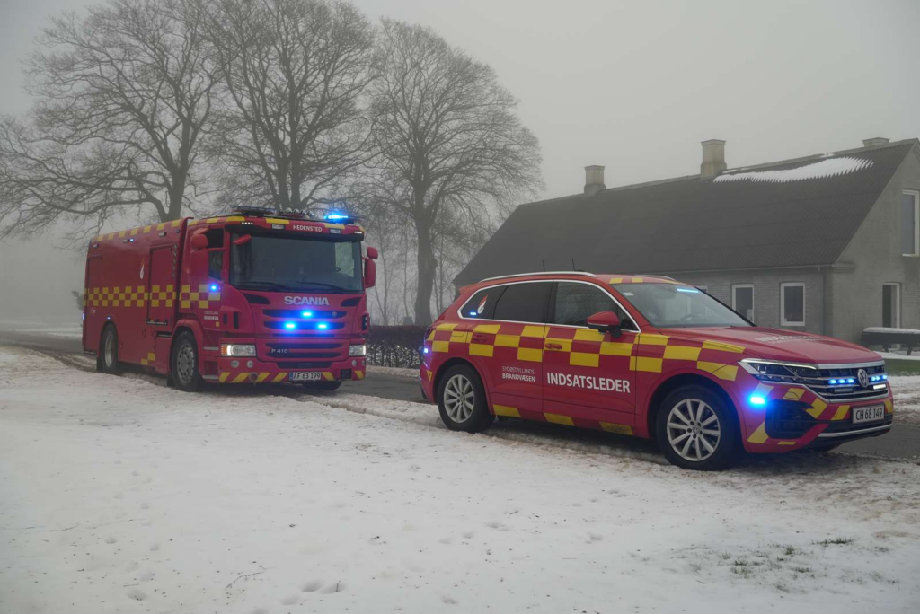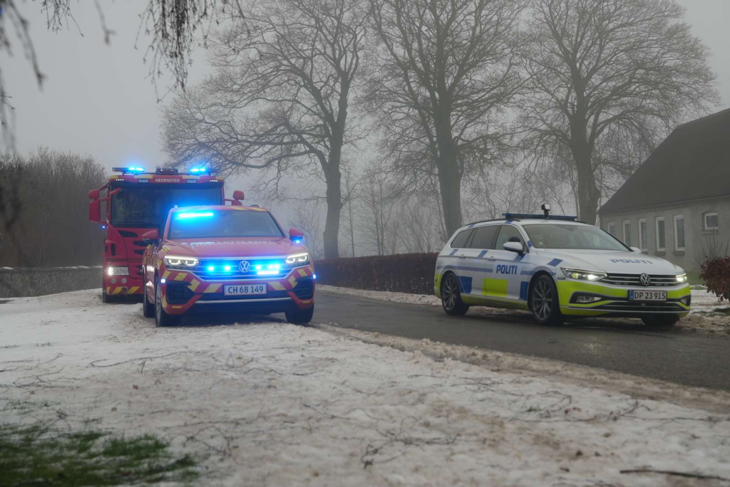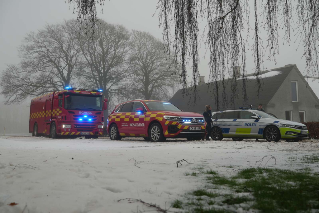 Her er beredskabet rykket ud i mindst fire udrykningskøretøjer, oplyser Presse-fotos.dks udsendte.