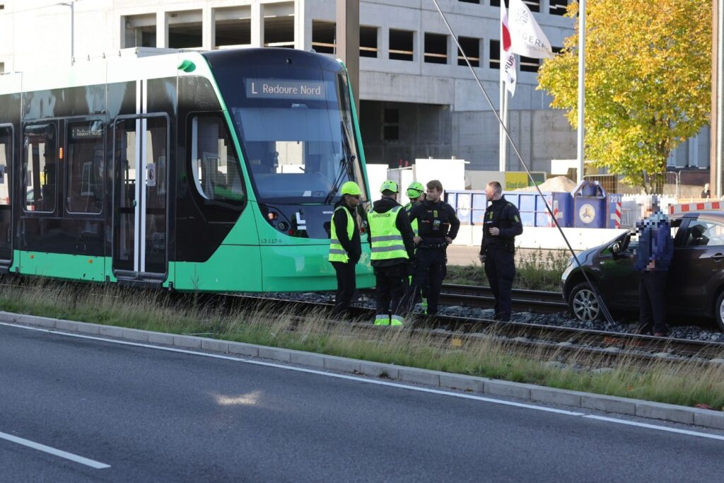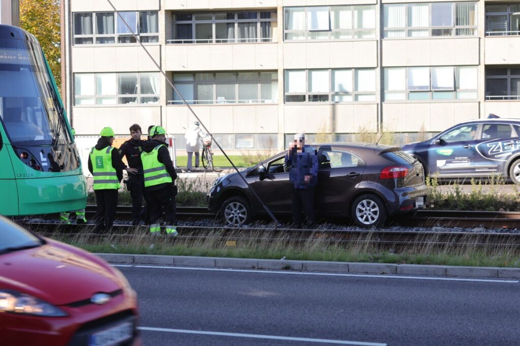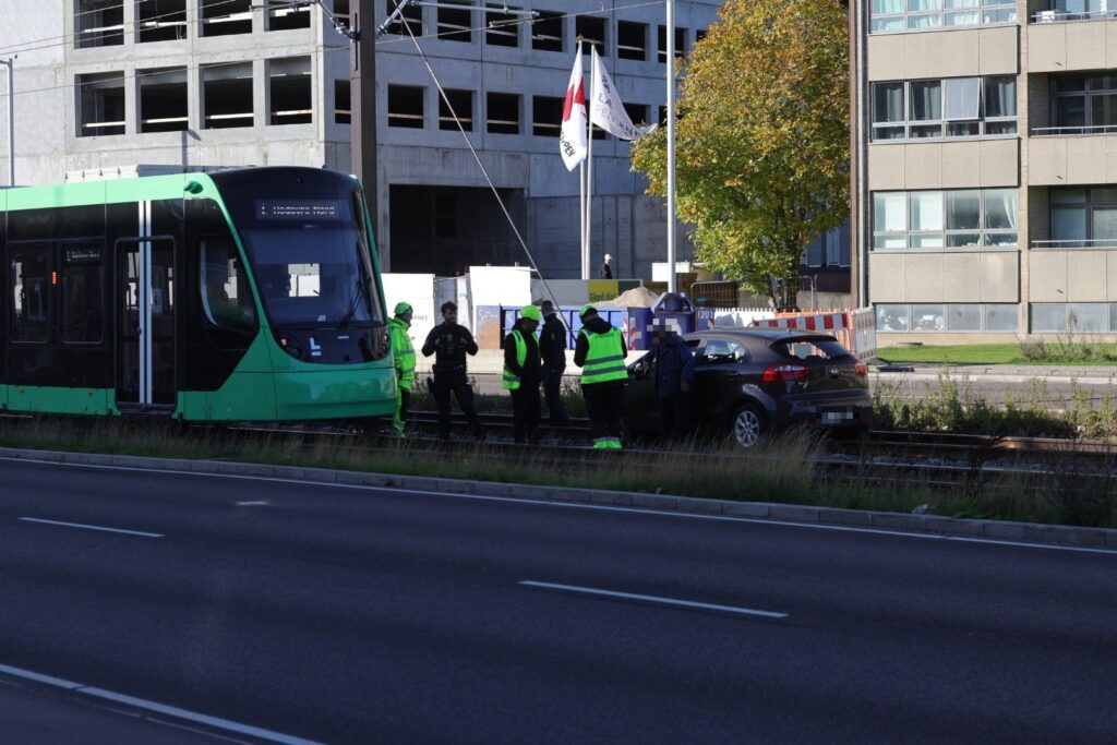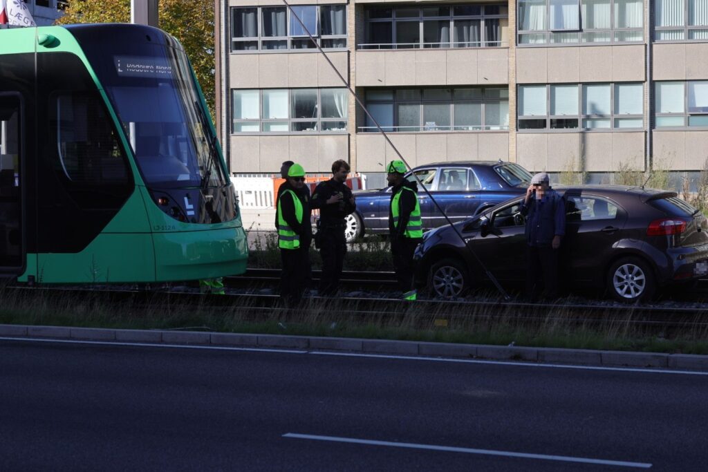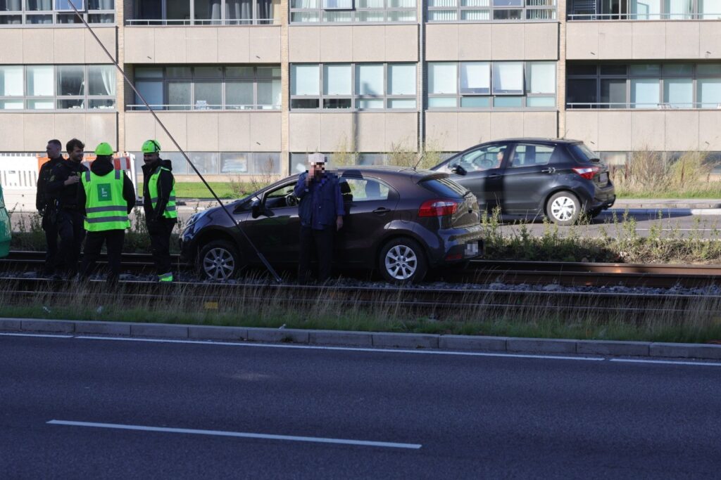 En bilist har nemlig formået at køre ind på togskinnerne, hvor et letbanetog normalt er det eneste køretøj, der kører.