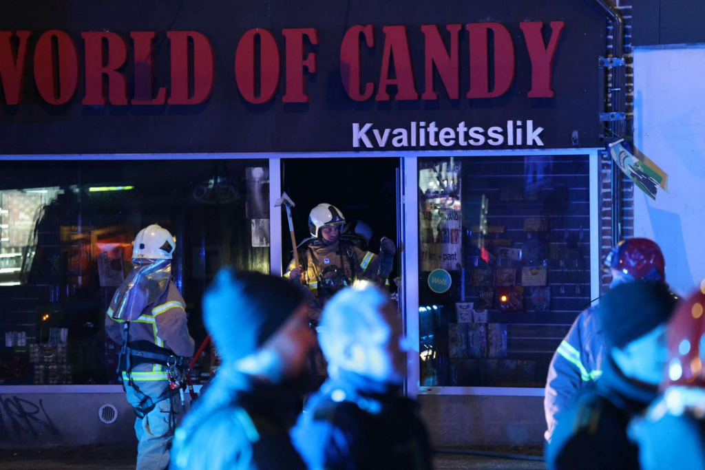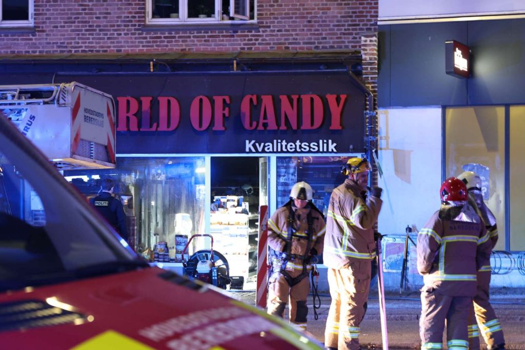 Branden er opstået i et elskab i butikken ‘World of Candy’ på Brønshøj Torv.