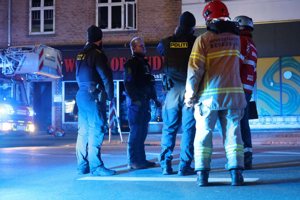 ‘Der er gået ild i et elskab i en butik, og røgen har spredt sig til opgangen og lejlighederne i stueetagen,’ oplyser Michael Andersen til Presse-fotos.dk