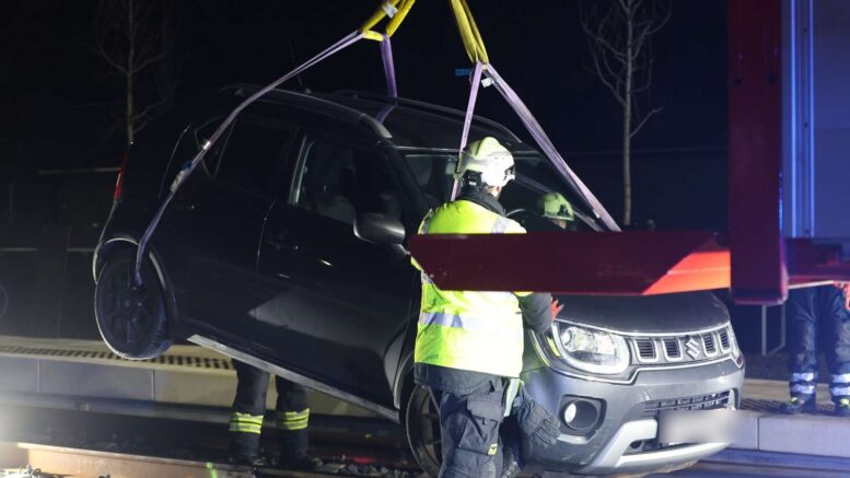 Vild ulykke på letbanespor: Bil må fjernes med kran
