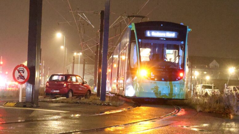 Nu er det sket igen: Personbil forulykker på letbaneskinner