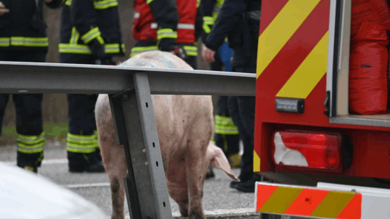 Grise aflives på landevej: Over 100 grise ender i grøften