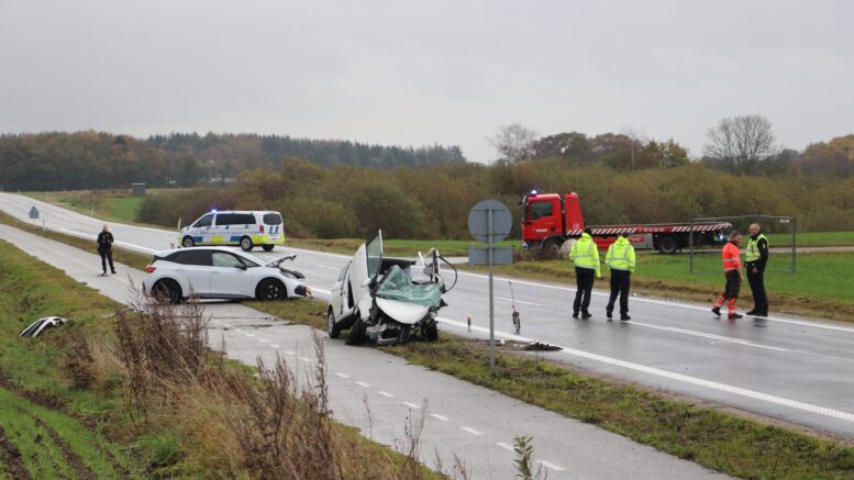 Ambulancer og lægebil fremme: Større uheld spærrer hovedvej