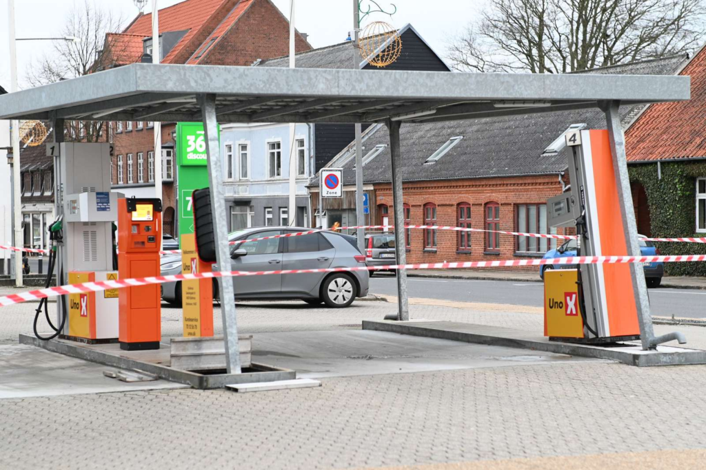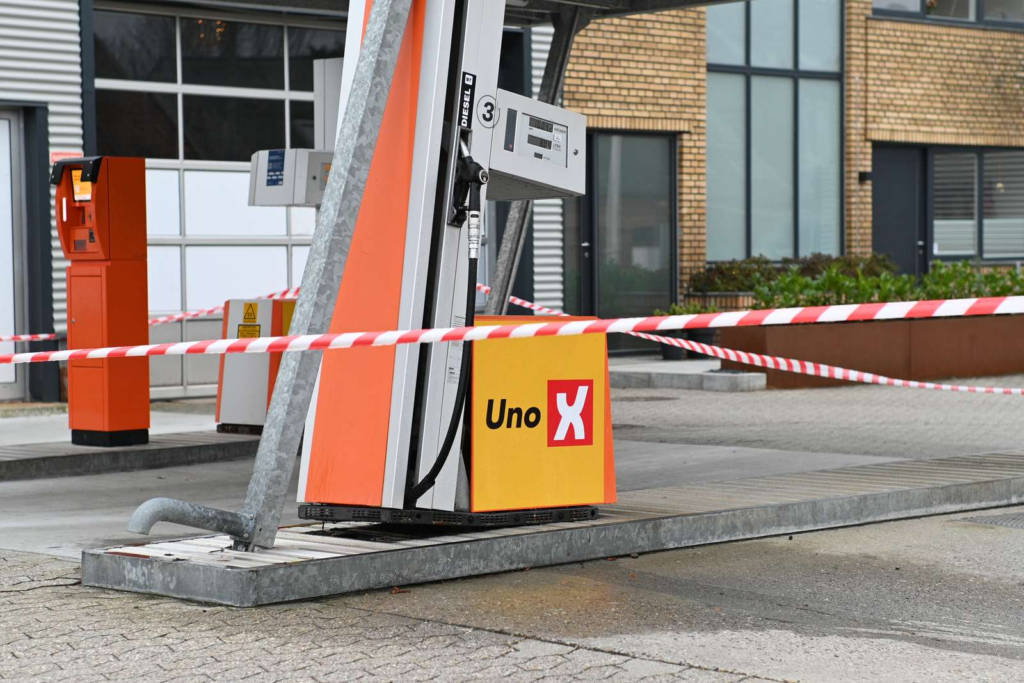 Bilister må mandag eftermiddag finde et andet sted at fylde tanken op end den Uno-X-tankstation, der står afspærret.