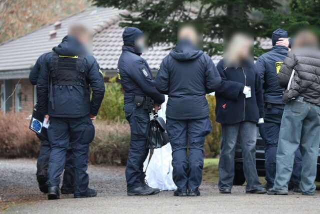 Ved adressen så Presse-fotos.dks udsendte også manden blive kørt væk i en ligvogn, mens en nabo fortalte til Ekstra Bladet, at hun om formiddagen hørte to skud. Umiddelbart troede hun, at der var jagt i området. Hendes hunde gøede og blev lukket ind.