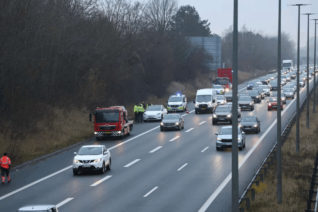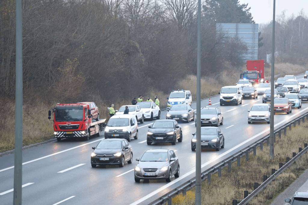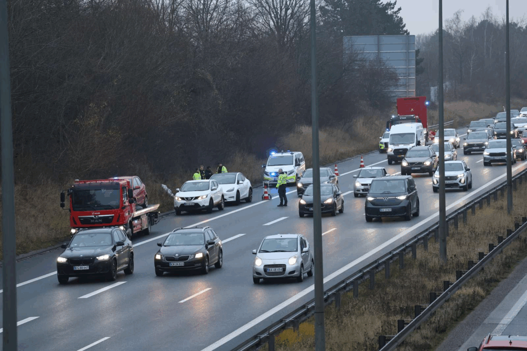 Søndag eftermiddag møder bilister tæt på hovedstaden en pludselig opbremsning i trafikken, efter et uheld har skabt problemer på en af landets mest trafikerede motorveje.