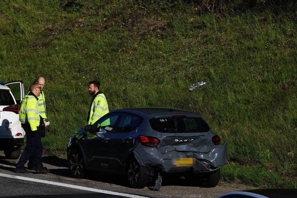 På billederne kan der ses en personbil, som der antageligt er blevet kørt op bagi, da bagenden er helt krøllet sammen.