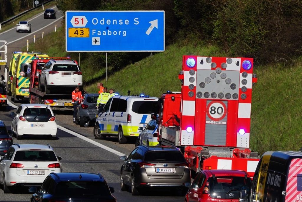 Det skaber et kæmpe trafikalt kaos på strækningen på en central motorvejsstrækning på Fyn.
