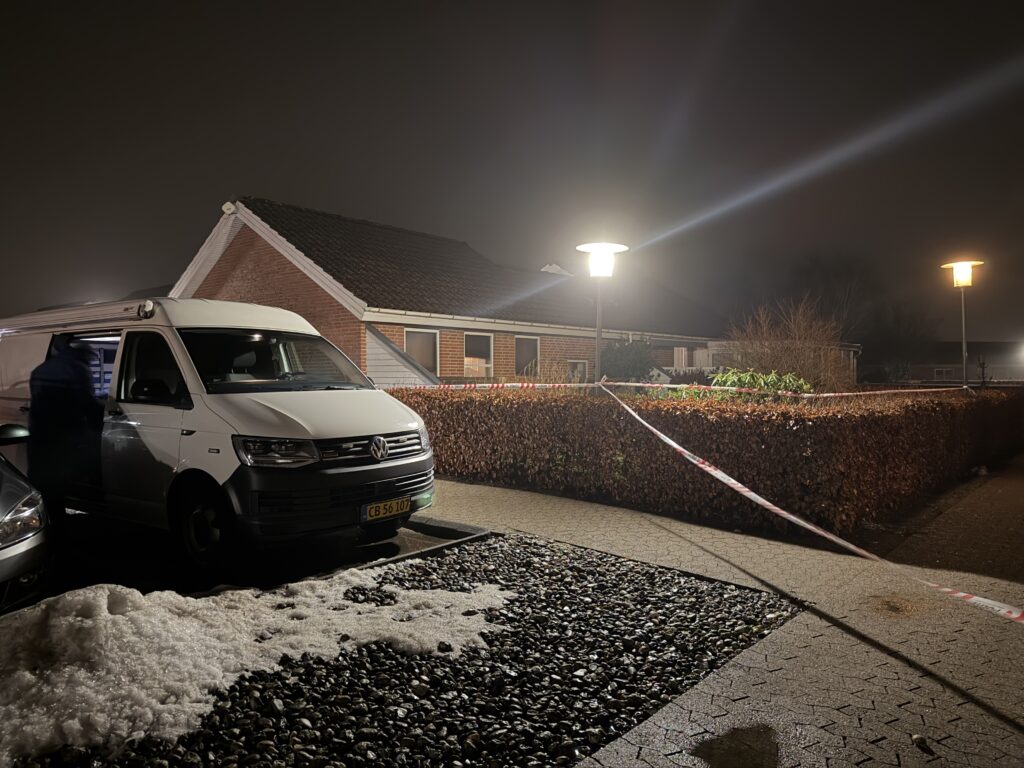 Politiets teknikere er blandt andre på adressen for at undersøge hændelsen nærmere.