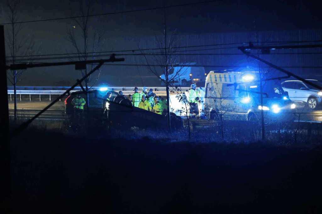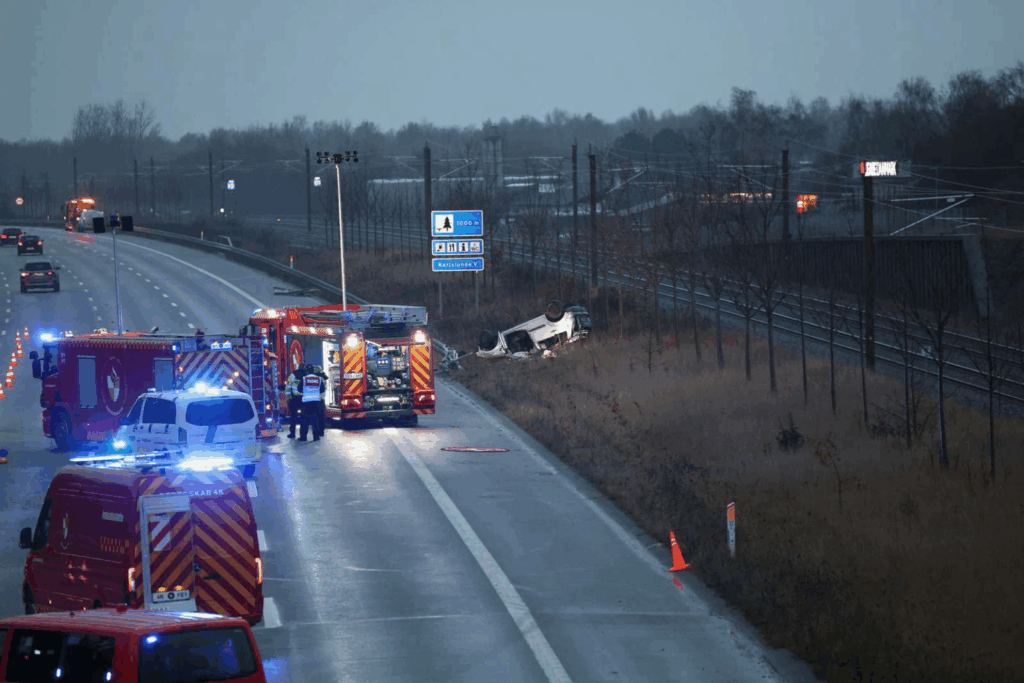 Det, der begyndte som en soloulykke tidligt søndag morgen, tog hurtigt en trist drejning. Kort efter det første sammenstød rammer endnu et køretøj det, der ligner en skiltevogn i ulykkeszonen.