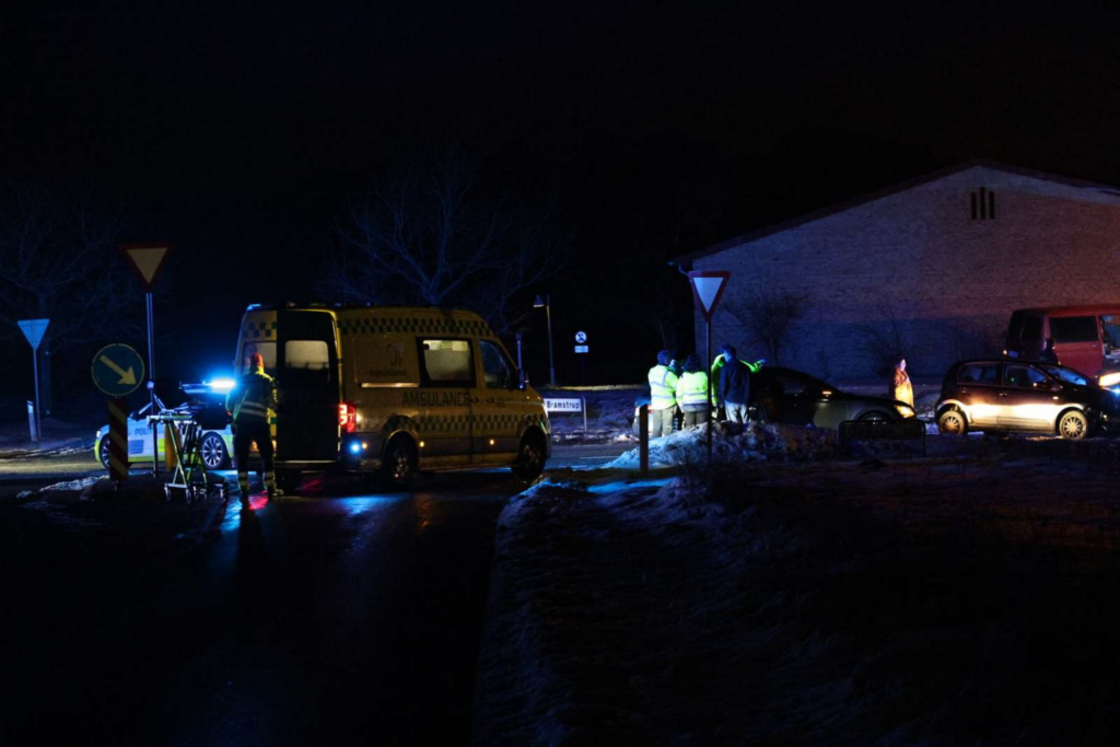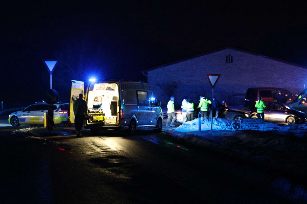 Tre biler var onsdag aften involvert i et voldsomt færdselsuheld. Flere ambulancer hastede ud til stedet.