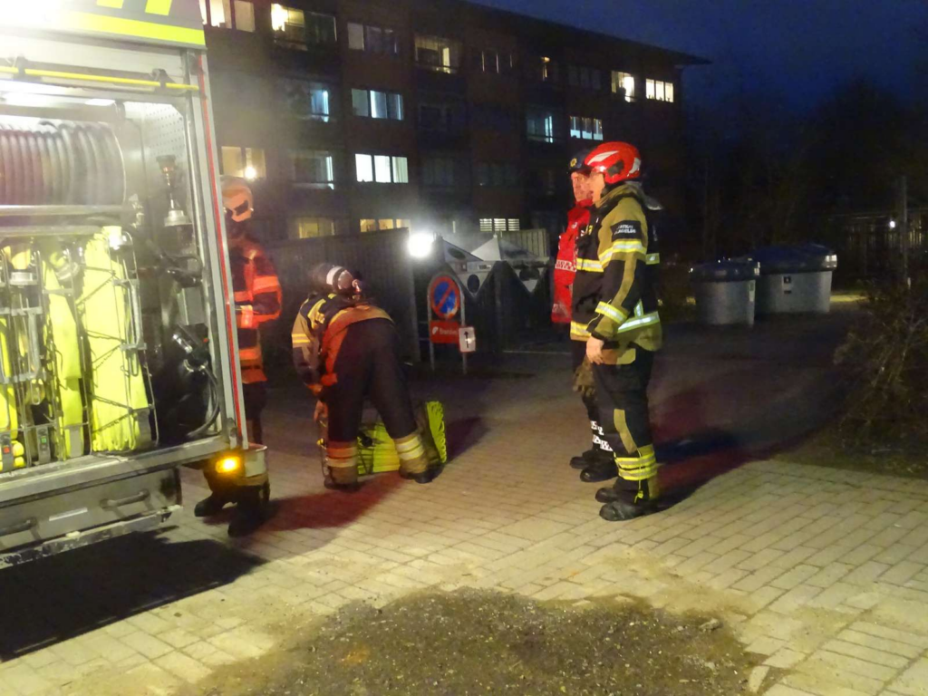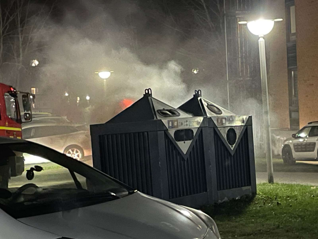 Billeder fra stedet viser, at en røgfane igen stiger til vejrs fra den samme affaldscontainer.