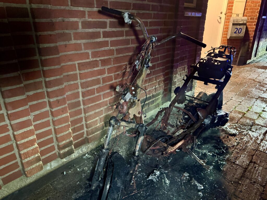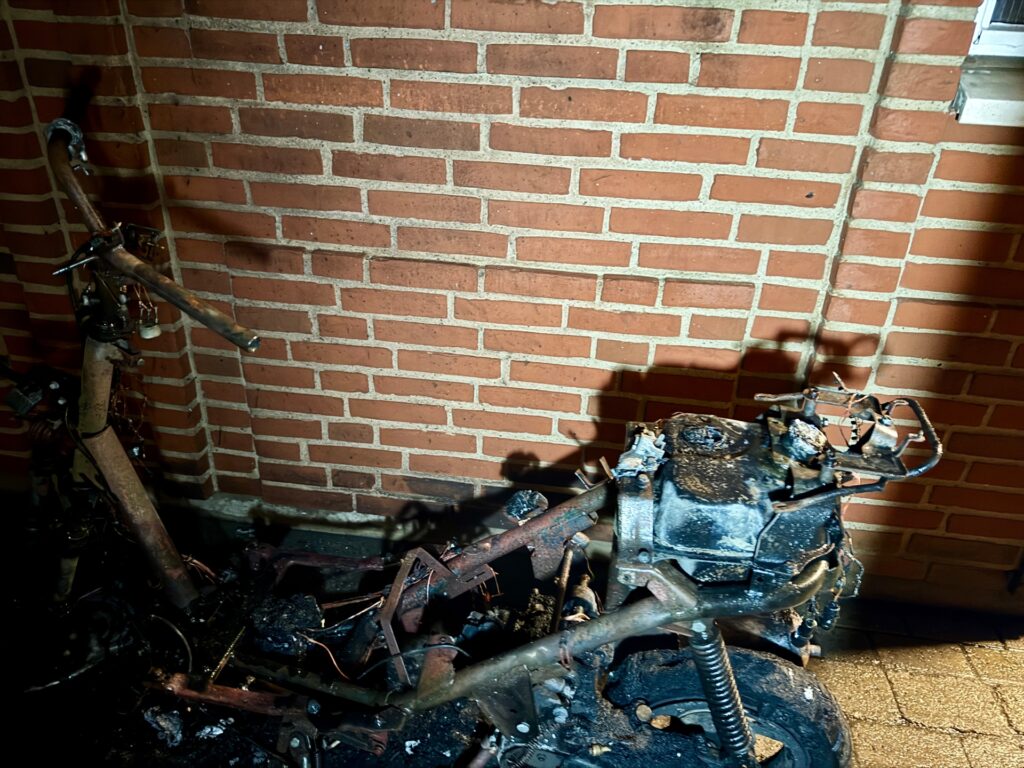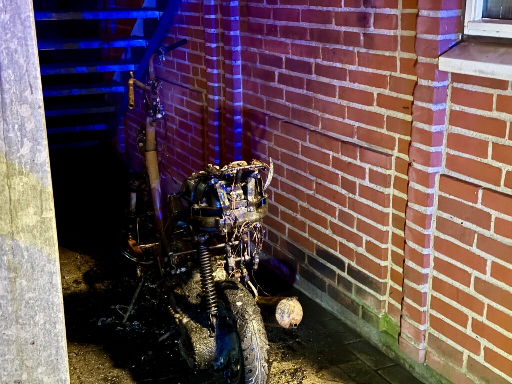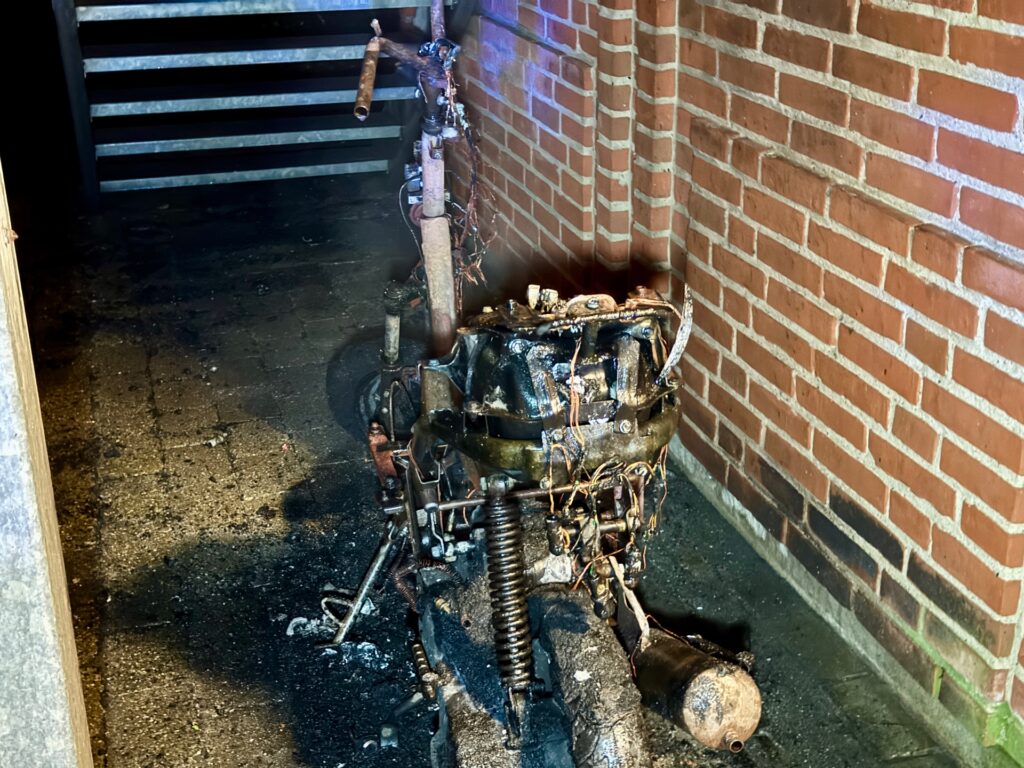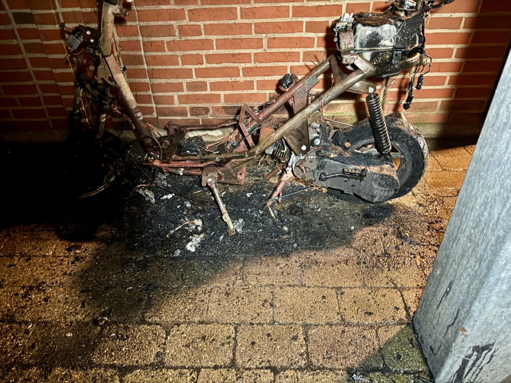 Ved brandvæsenets ankomst kunne det konstateres, at en knallert stod i flammer.