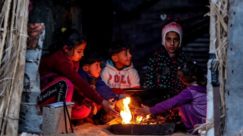 Gazastriben: Børn varmer sig om bål i flygtningelejr