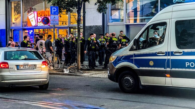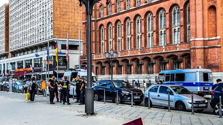Kæmpe politiopbud på Aleksandr Platz i Berlin