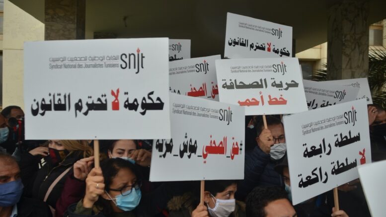 Tunesiske journalister demonstrerer