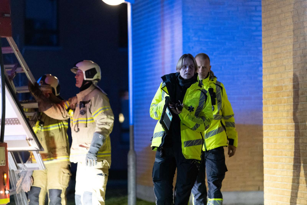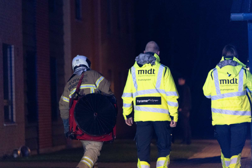 Ved ankomsten var der tre brandbiler fremme, og brandfolk kunne ses iført røgdykkerapparater. En ambulance var ligeledes til stede, mens mandskabet gik i gang med at udlufte lejligheden.