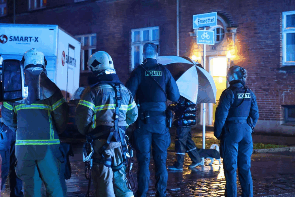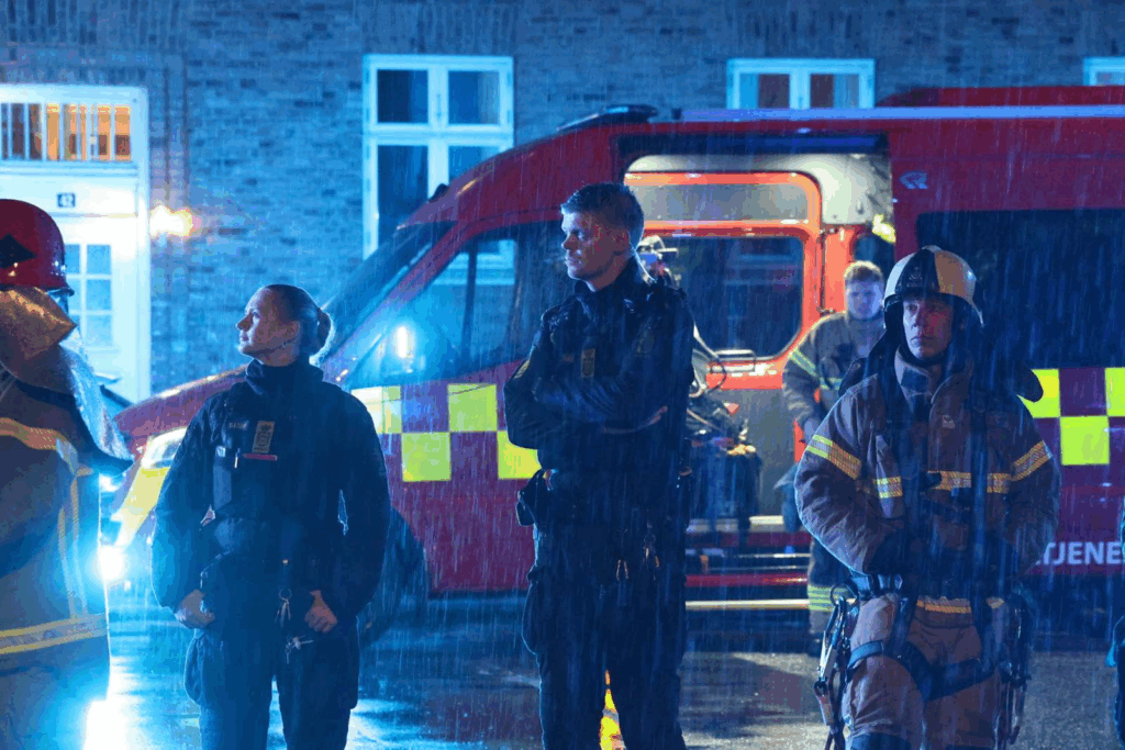 “Der er omkring seks-otte udrykningskøretøjer. Mandskabet er oppe i lejligheden.”