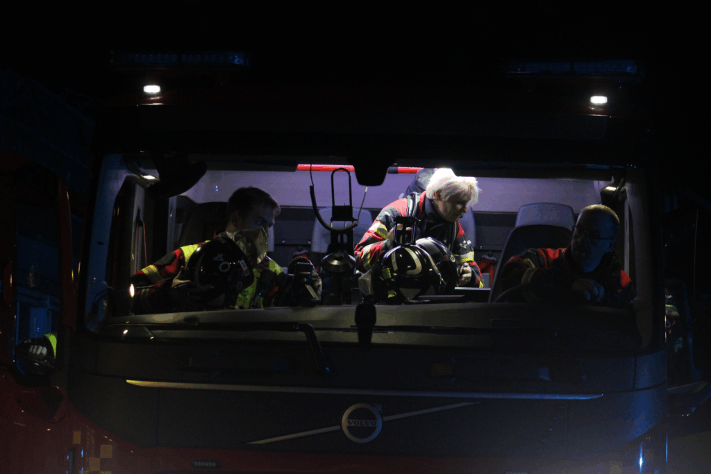 “Indsatsleder, ‘sprøjte’ og en masse mennesker er fremme.”
