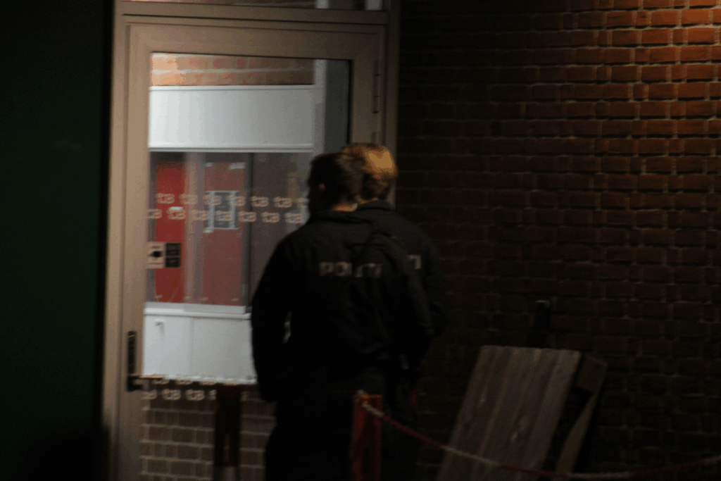 Billeder fra stedet viser både brand- og politifolk, der befinder sig omkring en af bygningens ind- og udgange.