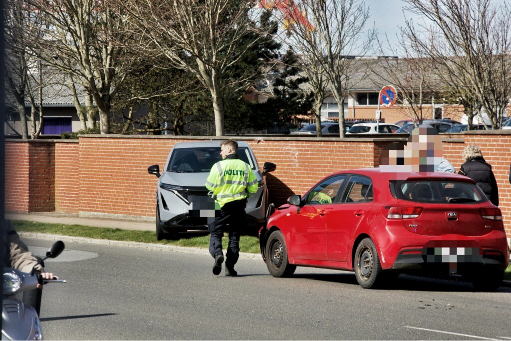Politiet er onsdag til stede i midten af en stor dansk by. Det skyldes, at der er sket et uheld mellem to biler.