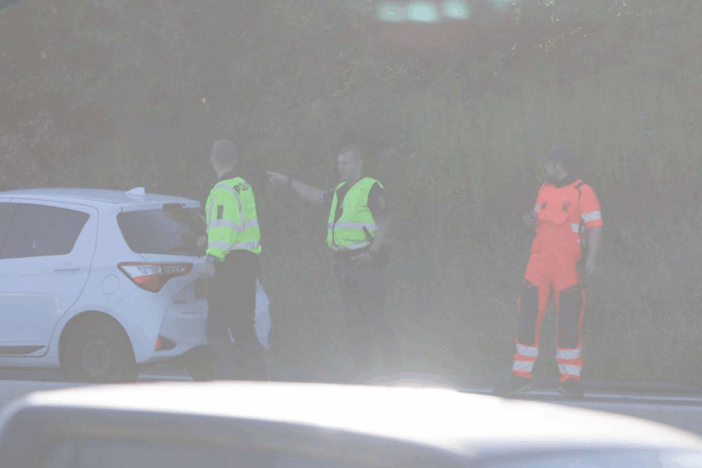 Ifølge Presse-fotos.dks udsendte er det højre spor blevet afspærret i forbindelse med oprydningen af færdselsuheldet.